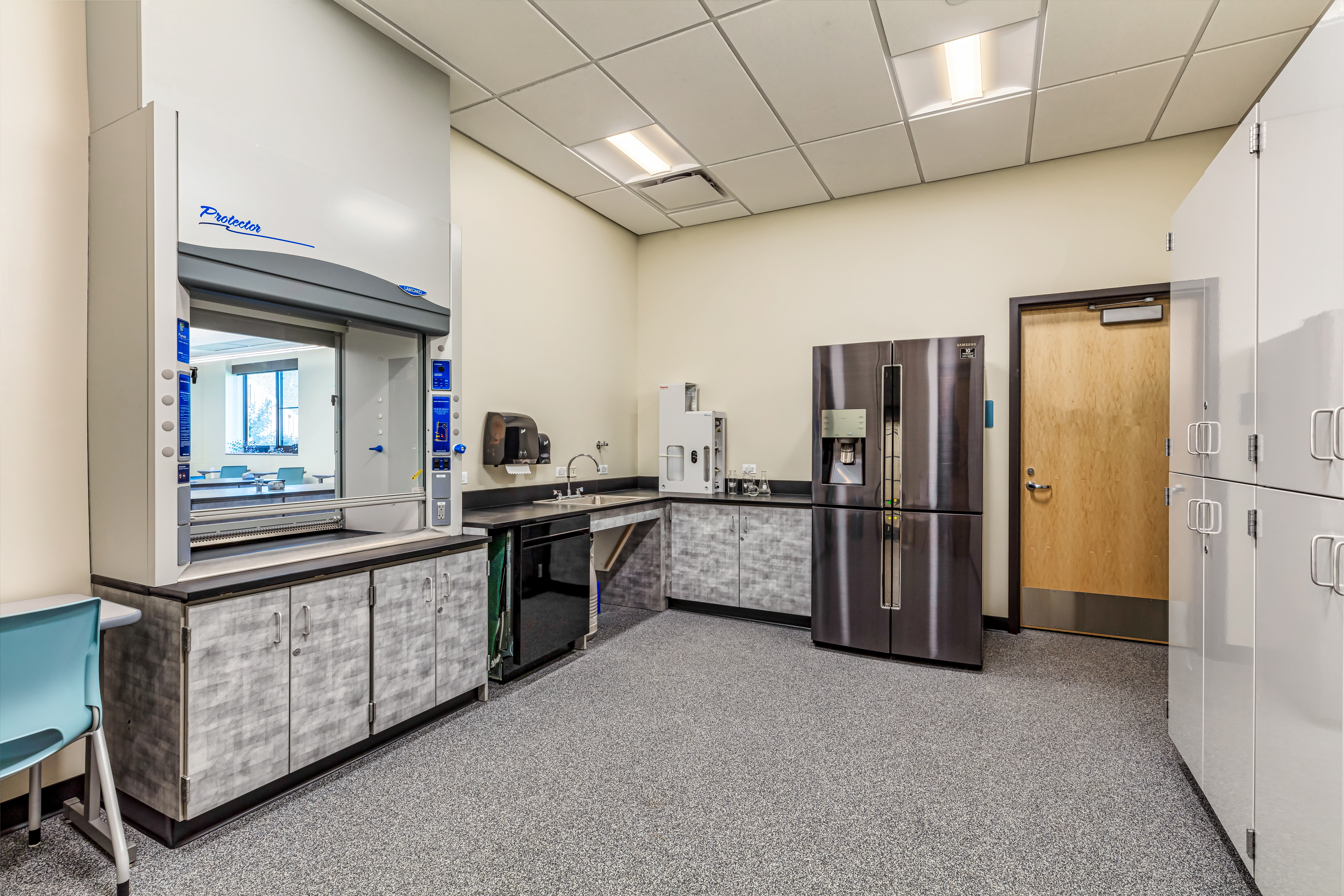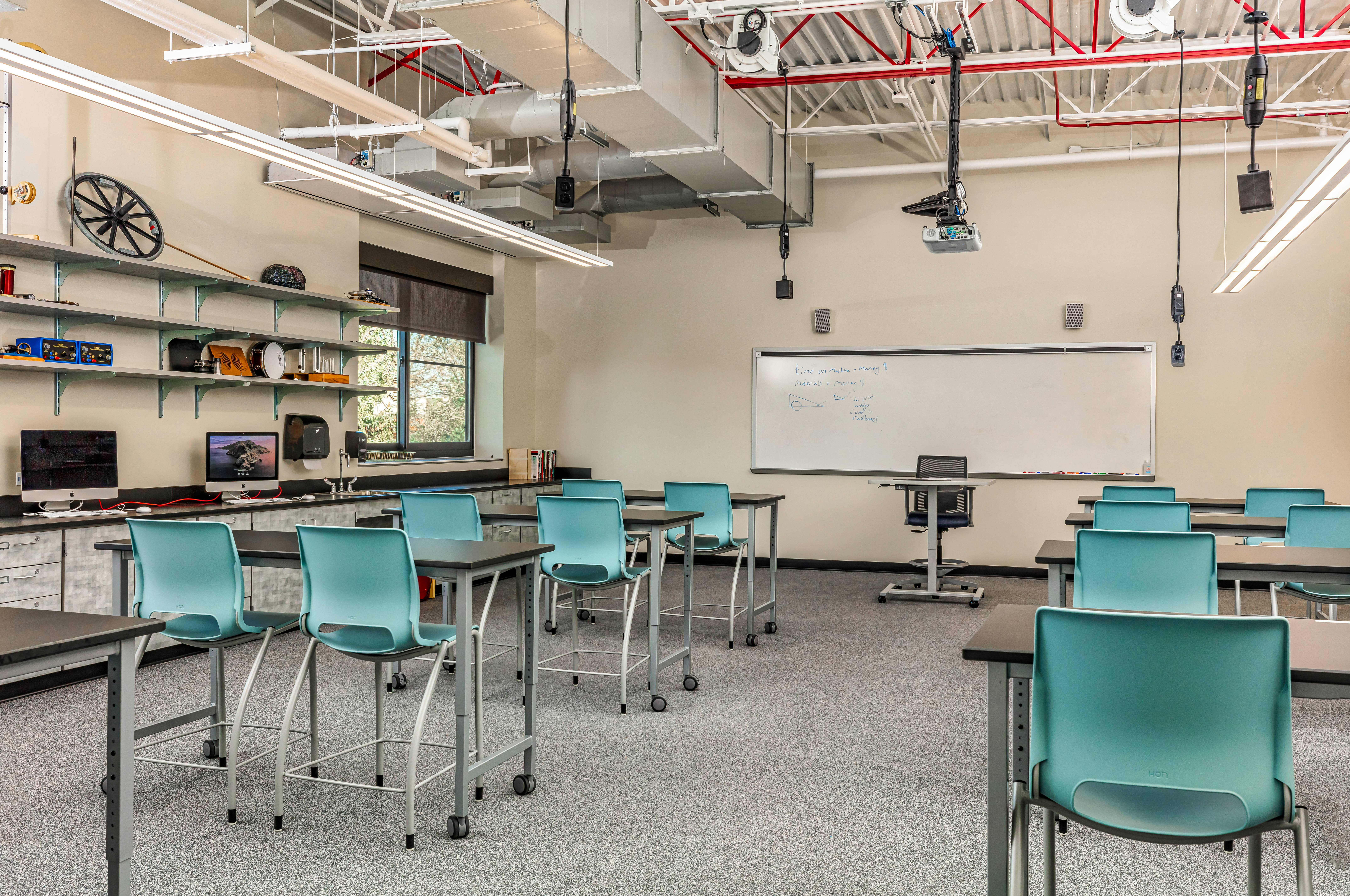 The Alexander Dawson School Innovation Center represents a comprehensive approach to K-12 science education, featuring specialized learning environments designed to support the school’s innovative curriculum. The 24,000-square-foot, three-story building houses science classrooms and laboratories, as well as a shared makerspace with associated wood and metal shops and storage areas.