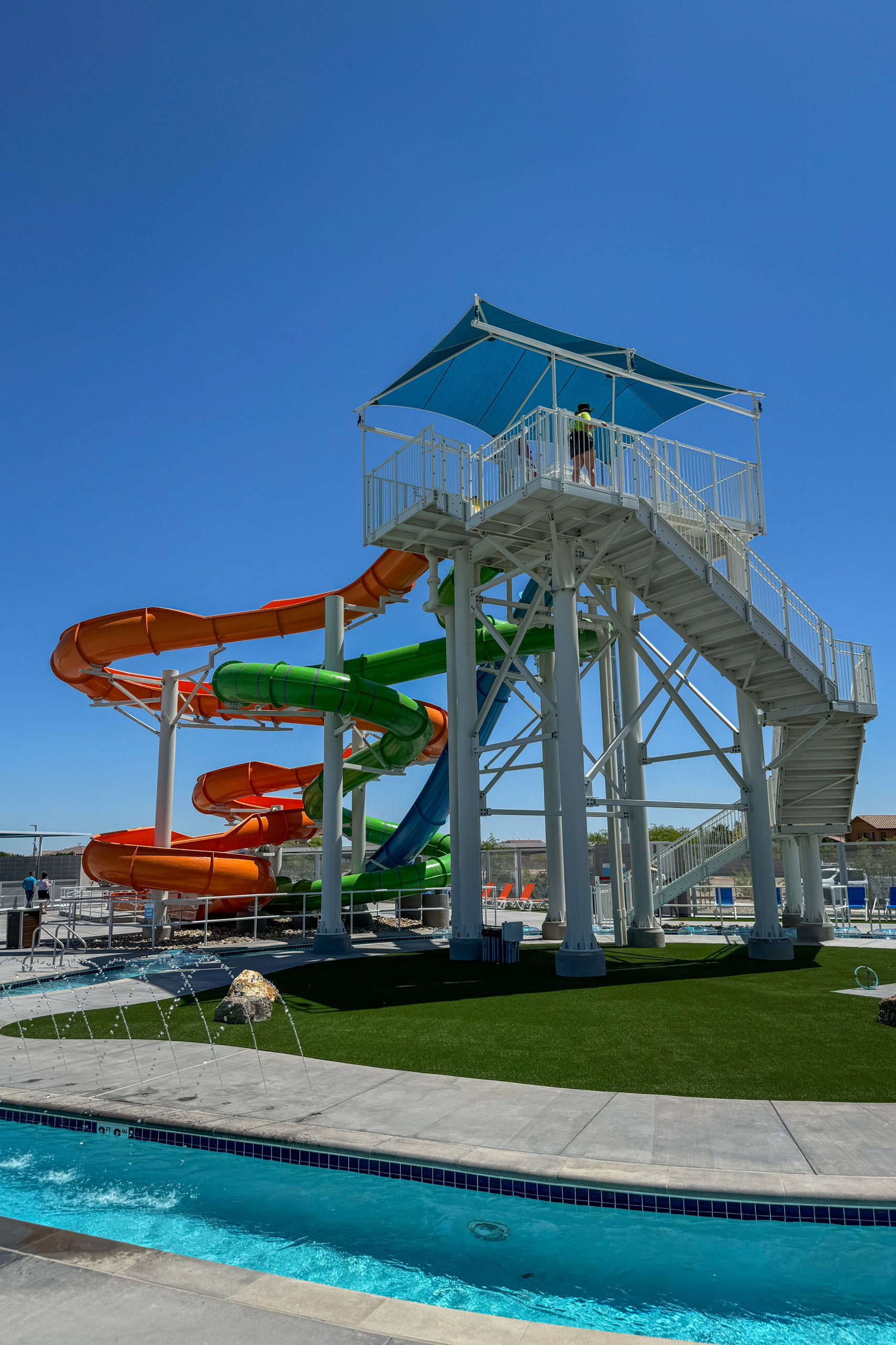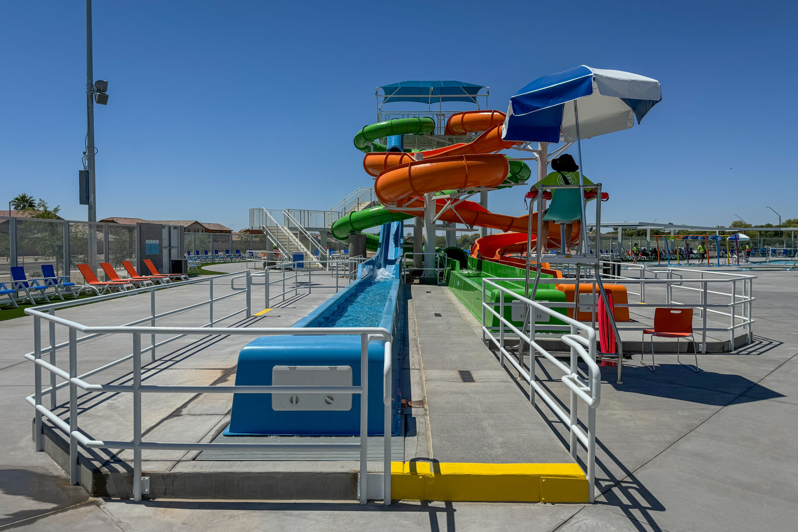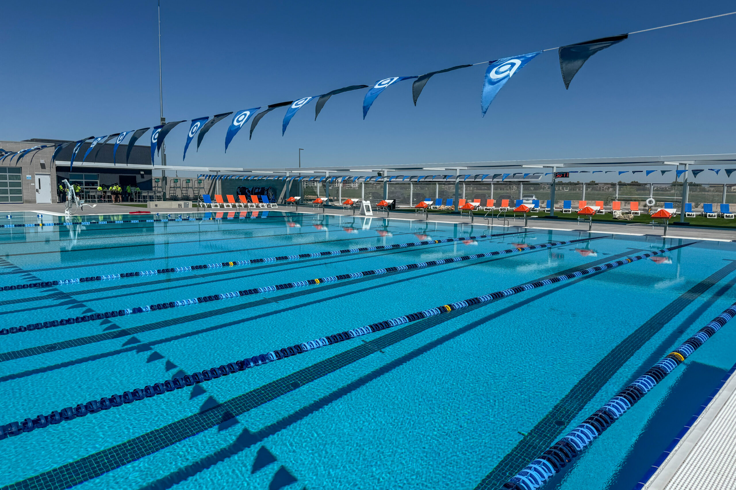 The Avondale Aquatic Center is a modern, energy-efficient facility designed for comfort, safety, and community engagement. It features locker rooms, showers, restrooms, staff offices, a nurse station, a lifeguard office, and a food truck/snack area.